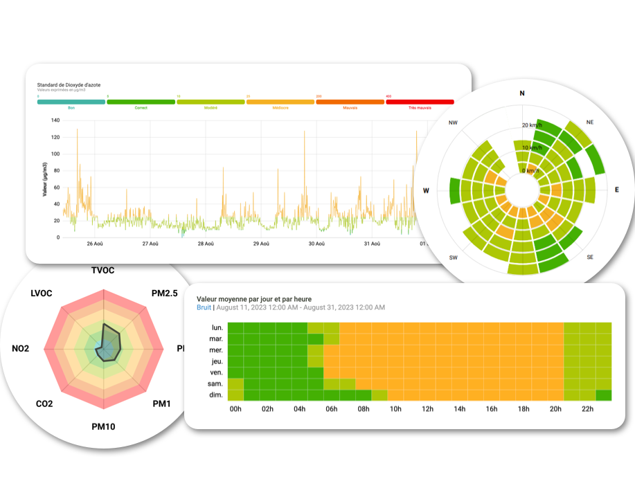 Alors que les données sur la pollution et l’environnement peuvent être complexes à déchiffrer, soyez assurés que nos données sont conformes aux normes élevées établies par des autorités renommées. En outre, vous avez la possibilité d’établir vos propres critères, parfaitement alignés sur les exigences uniques de votre entreprise !