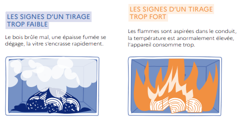 💡 1 mm de suie dans le conduit de fumée, c’est 10% de consommation de bois en plus. Évitez l’utilisation de bûches de ramonage : elles n’ont pas prouvé leur efficacité