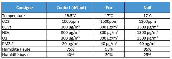 Les points de consigne ont une grande influence sur l’affichage LED, il est important de connaître les valeurs par défaut.