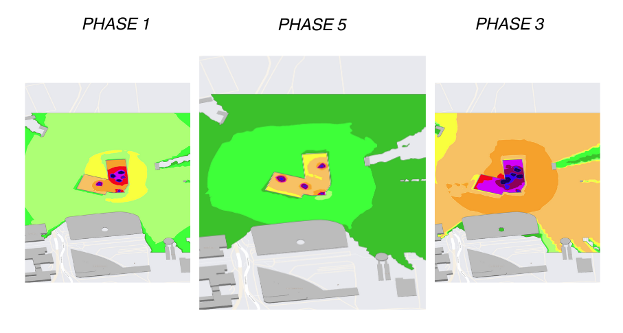 - Generation of noise maps for each construction phase: These maps are generated at each stage of the construction site, allowing for the anticipation and management of noise disturbances while complying with regulations.